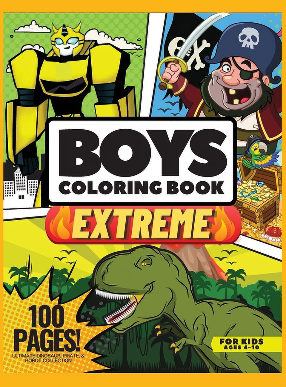 Extreme Coloring Book For Kids 100 Pages Ultimate Dinosaur Pirate And Robot Collection Coloring Book For Boys Ages 4 10 Hardcover Walmart Com